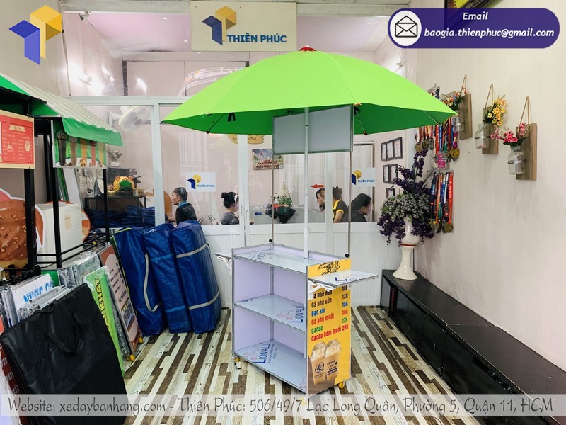 Hãy đến Công ty Thiên Phúc chúng tôi qua số Hotline/ Zalo 0903.897.980 nếu cần cung cấp sản xuất các loại booth – các loại quầy kệ bán hàng: bán hàng di động, kệ trưng bày, booth bán cafe gấp gọn.