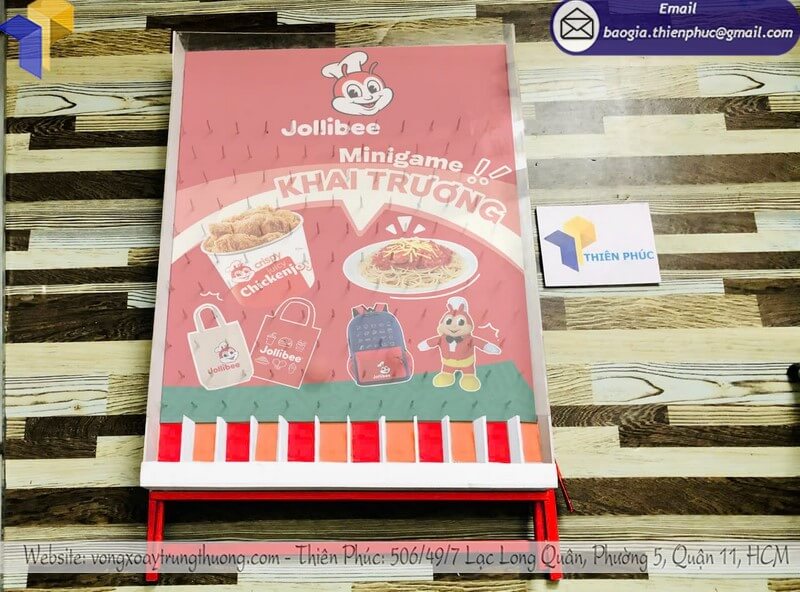Tên sản phẩm: Nơi làm bảng chơi thả banh plinko trúng thưởng với nhãn hàng thương hiệu cho sự kiện khai trương JOLLIBEE
