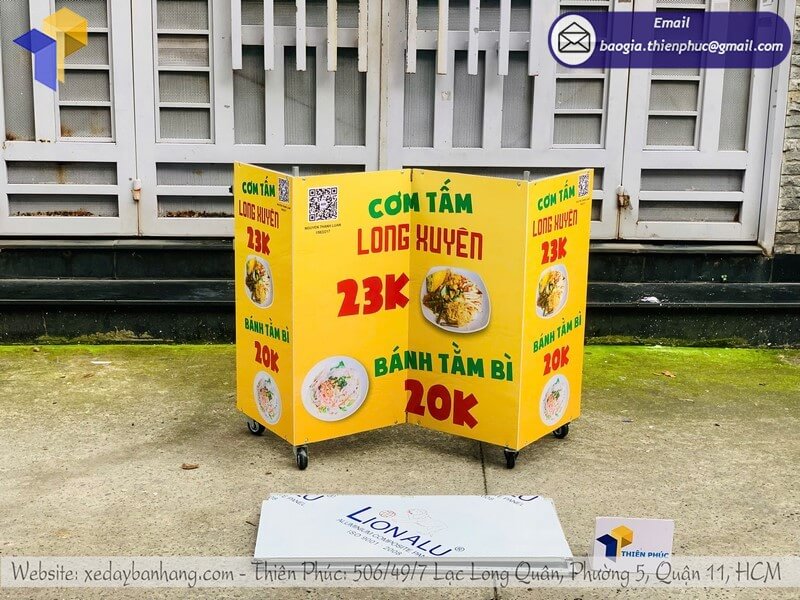- Tham khảo và chọn mẫu kệ bán cơm tấm xếp gọn lưu động đẹp.
