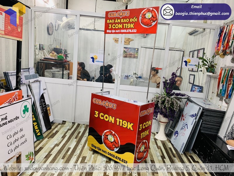 Với mẫu xe bán cua gấp gọn lưu động này rất dễ lắp ráp và tháo rời 1 cách đơn giản và tiện lợi.