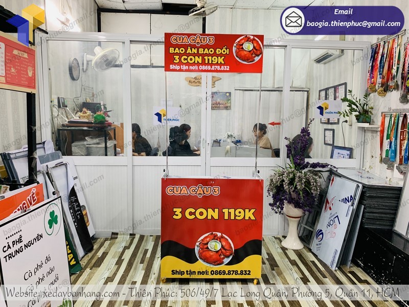 Phong trào bán cua 3 con giá rẻ với xe bán cua gấp gọn
