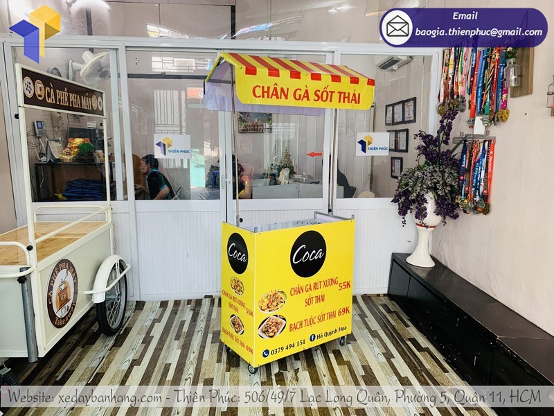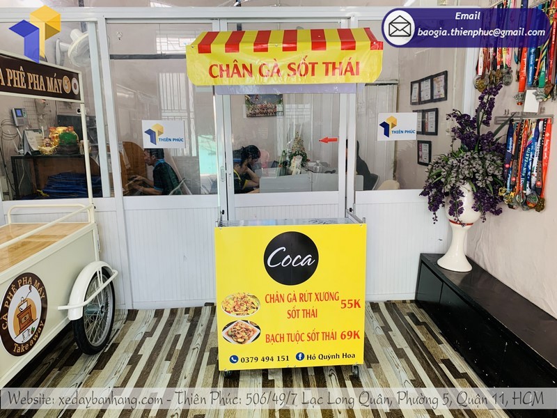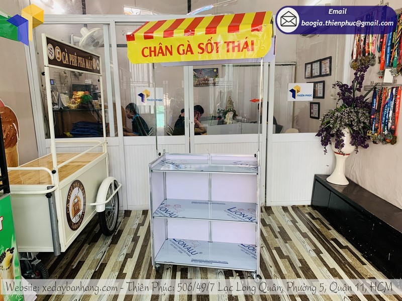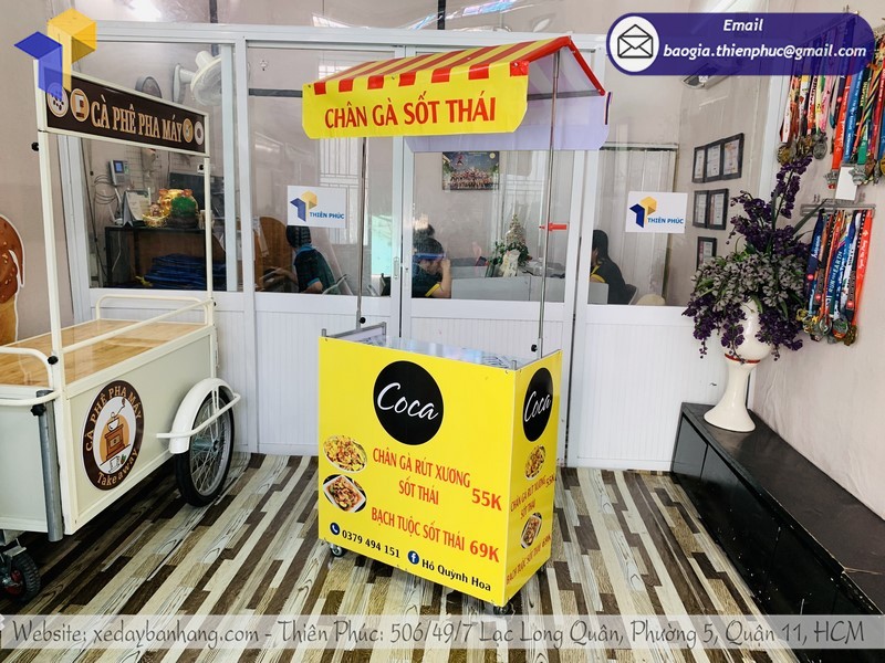 Bạn hoàn toàn có thể di chuyển và tiếp cận được với nguồn khách hàng tiềm năng mà bạn hướng đến một cách dễ dàng. Hơn thế, bạn có thể yêu cầu gia công, thiết kế theo ý muốn của bạn. Thiên Phúc sẵn sàng đáp ứng nhu cầu của bạn. Bởi chúng tôi có đội ngũ nhân công giàu kinh nghiệm; đam mê; nhiệt huyết với nghề. Với mong muốn mang đến cho khách hàng những chiếc quầy bán đồ ăn vặt tiện lợi hoàn hảo nhất; độc lạ nhất nhằm thu hút và để lại ấn tượng sâu sắc nhất cho khách hàng.