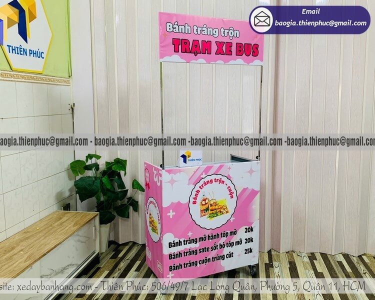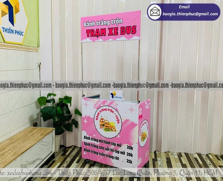 Đặc biệt với mô hình bán hàng ngoài trời, việc thiết kế chuẩn nhu cầu thực tế giúp hạn chế phát sinh khi sử dụng như thiếu không gian để đồ, khó di chuyển hoặc không đủ nổi bật giữa khu đông người.