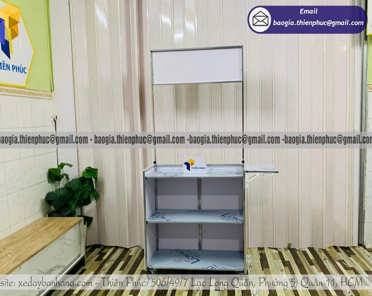 Tùy vào ngành hàng, có thể bổ sung thêm kệ, ngăn chứa, bánh xe hoặc mái che để tăng hiệu quả sử dụng.