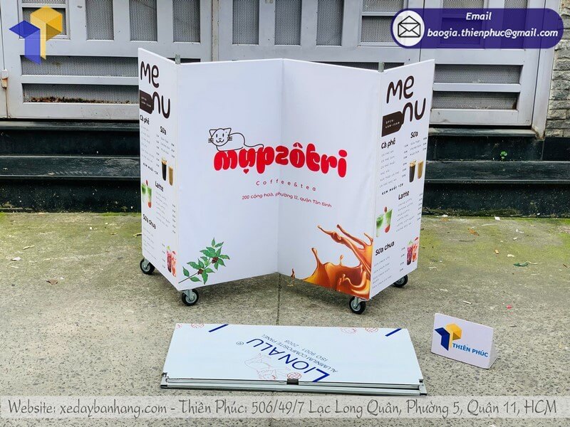 Cơ chế gấp mở, bánh xe linh hoạt giúp mọi người dễ dàng di chuyển và sử dụng, từ bán cafe, đồ ăn nhanh đến sản phẩm thủ công hay quà lưu niệm. Điều này giúp tối ưu trải nghiệm khách hàng và tăng doanh số.