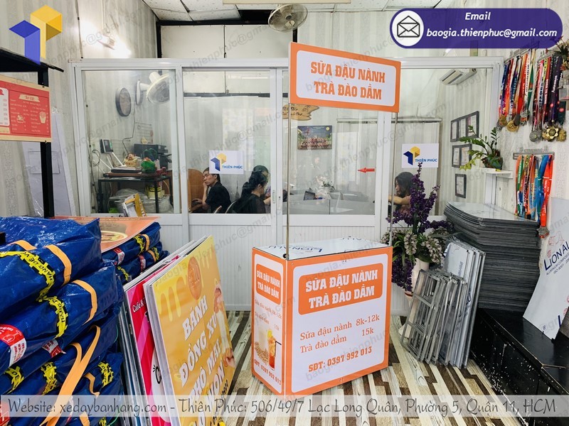 Bạn hoàn toàn có thể di chuyển và tiếp cận được với nguồn khách hàng tiềm năng mà bạn hướng đến một cách dễ dàng. Hơn thế, bạn có thể yêu cầu gia công, thiết kế theo ý muốn của bạn. Thiên Phúc sẵn sàng đáp ứng nhu cầu của bạn. Bởi chúng tôi có đội ngũ nhân công giàu kinh nghiệm; đam mê; nhiệt huyết với nghề. Với mong muốn mang đến cho khách hàng những chiếc quầy bán sữa đậu nành hoàn hảo nhất; độc lạ nhất nhằm thu hút và để lại ấn tượng sâu sắc nhất cho khách hàng.