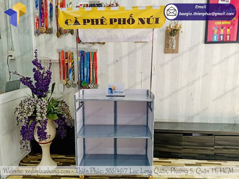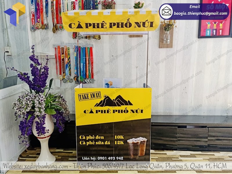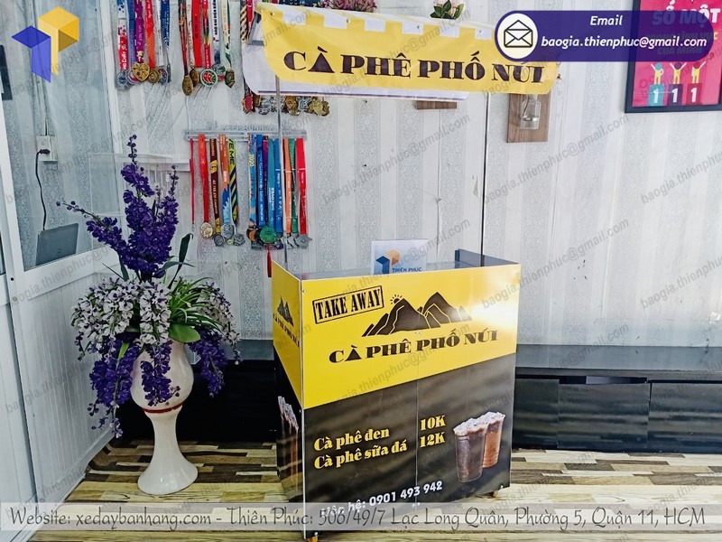 Với 10 năm kinh nghiệm làm trong lĩnh vực sản xuất các laoij xe đẩy bán hàng lưu động, Thiên Phúc tự tin sẽ mang đến những chiếc quầy cà phê 30s gấp gọn hoàn mỹ đáp ứng được mọi yêu cầu của quý khách hàng.