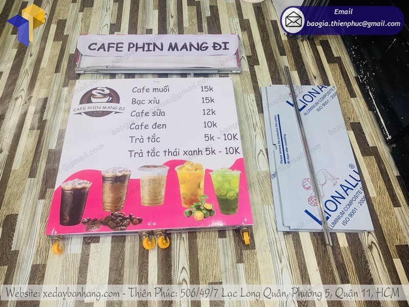 + Di chuyển linh hoạt: Công cụ được lắp thêm tay đẩy, bánh quầy café phin lưu động mang tính cơ động cao. Nhờ vậy người bán tiếp cận được nhiều khách hàng hơn, địa điểm buôn bán trở nên linh hoạt.