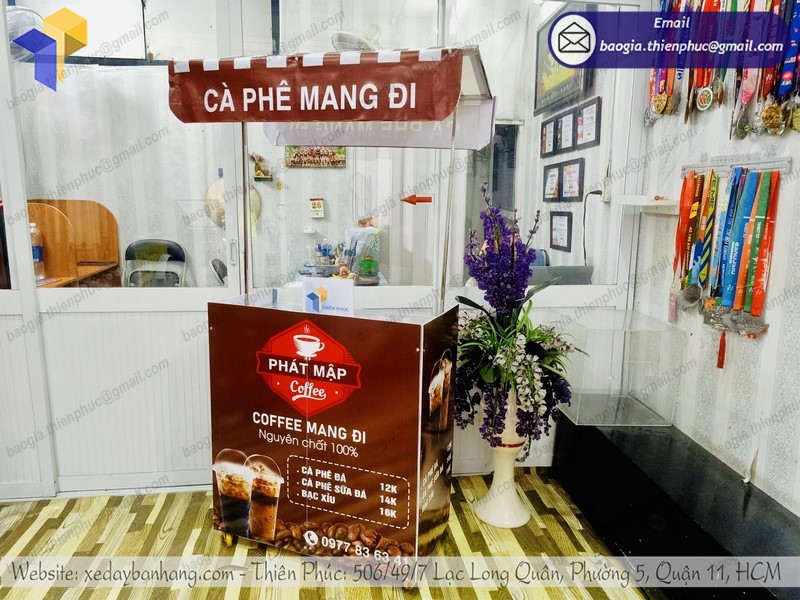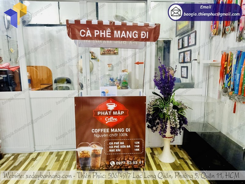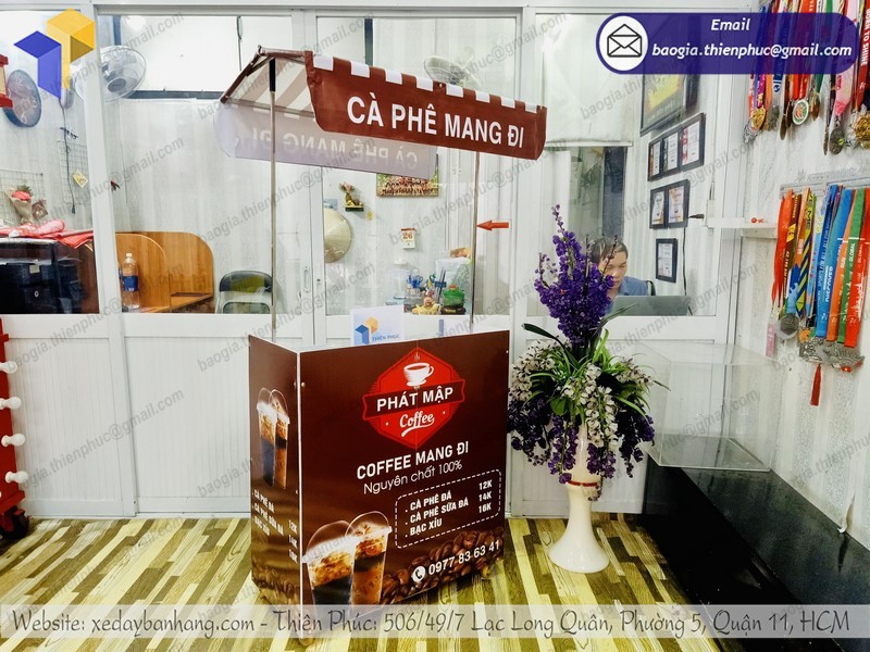 Mua quầy kinh doanh cafe 30s giá rẻ tại Thiên Phúc để được hỗ trợ thiết kế Decal độc quyền miễn phí. Chính sách bảo hành trọn đời chuyên nghiệp. Trợ giá hỗ trợ vận chuyển miễn phí tận nơi trên toàn quốc. Liên hệ làm đại lý: 0903.897.980