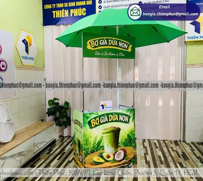 Quầy Kinh Doanh Đồ Uống Tích Hợp Dù Che – Giải Pháp Toàn Diện 2 Trong 1