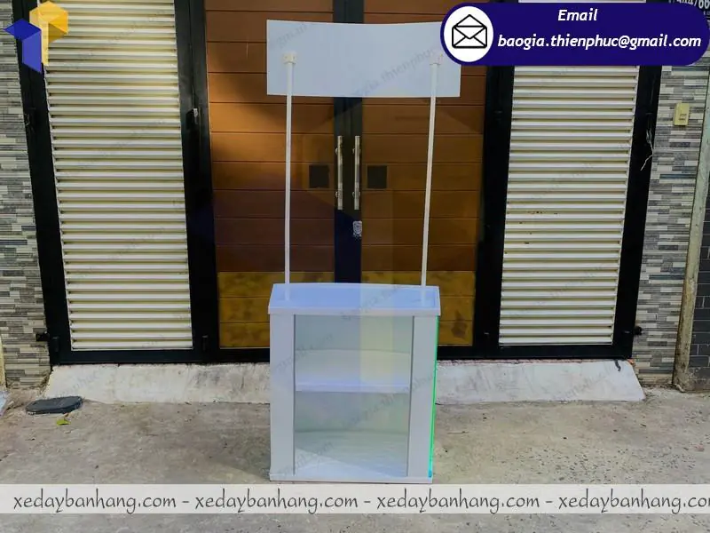 + Hai cây chống nối với logo và phần quầy bằng thép ống sơn trắng