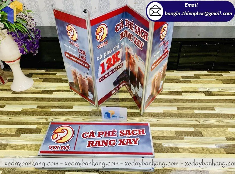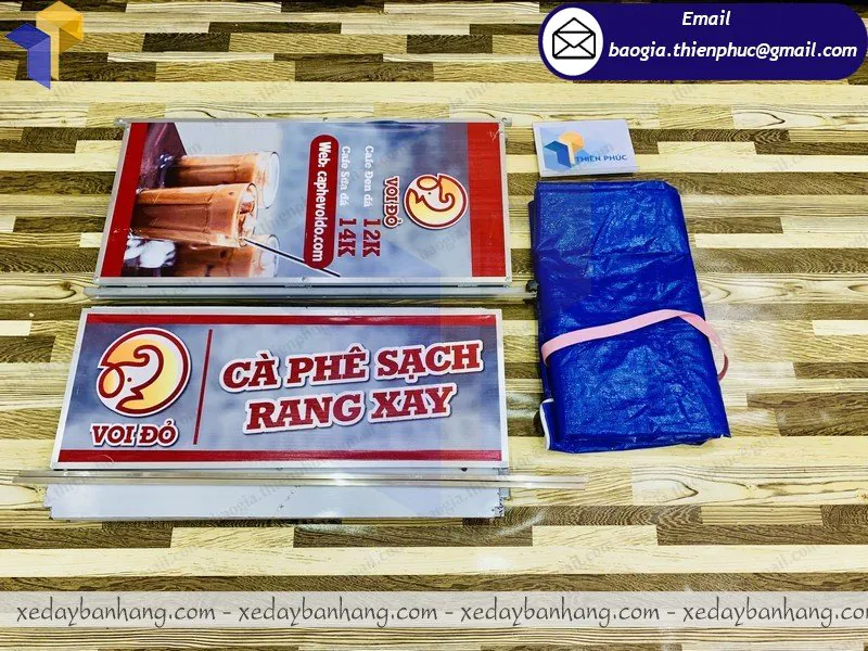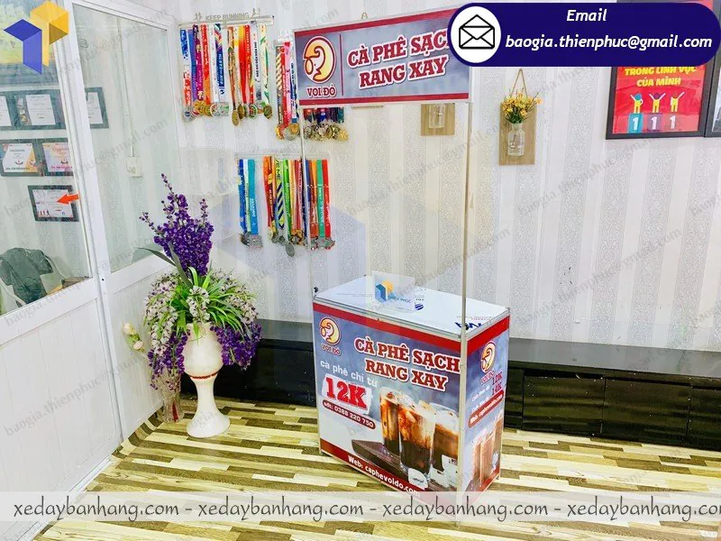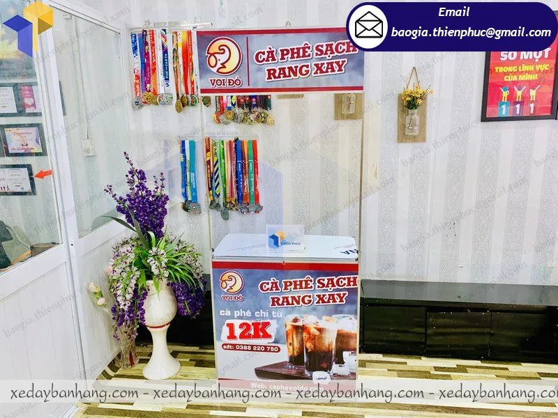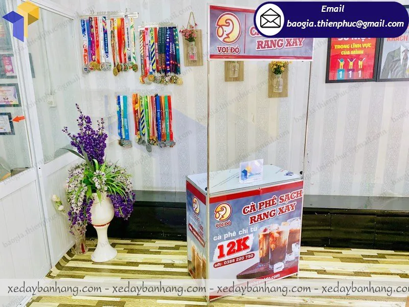 Tên Sản Phẩm: quầy sampling sắt căng bạt giá rẻ “VOI ĐỎ CAFÉ”