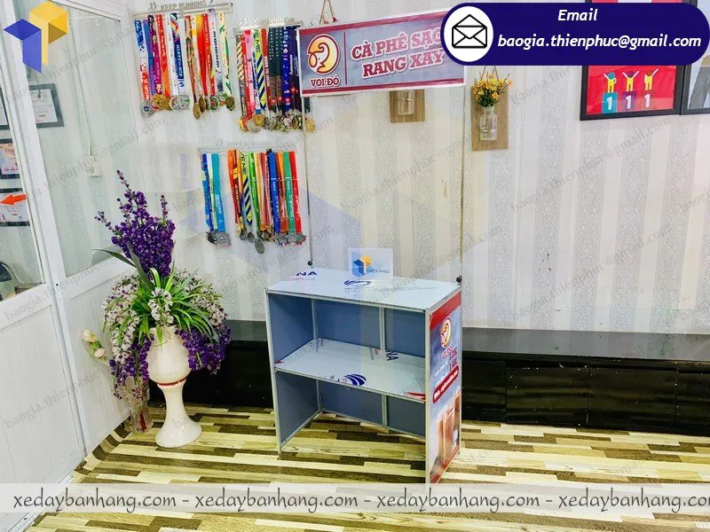 Quầy sampling sắt căng bạt giá rẻ ở xưởng Thiên Phúc