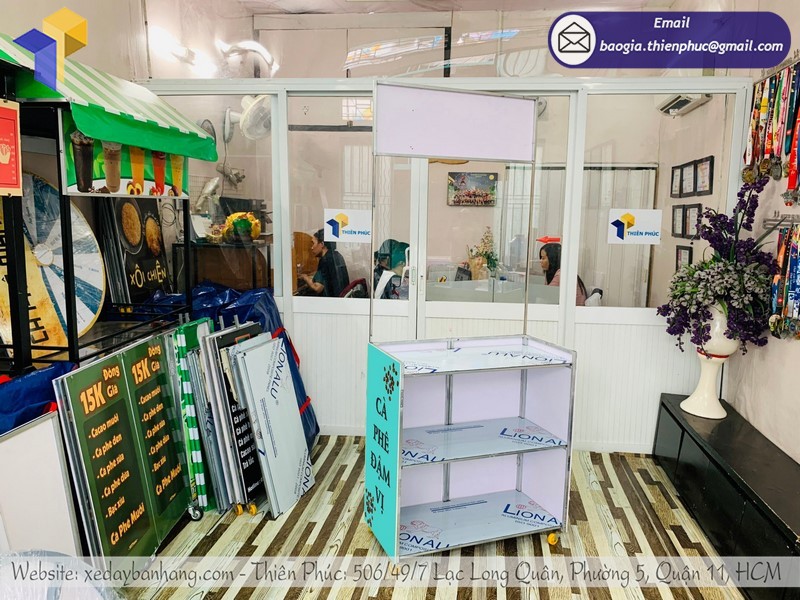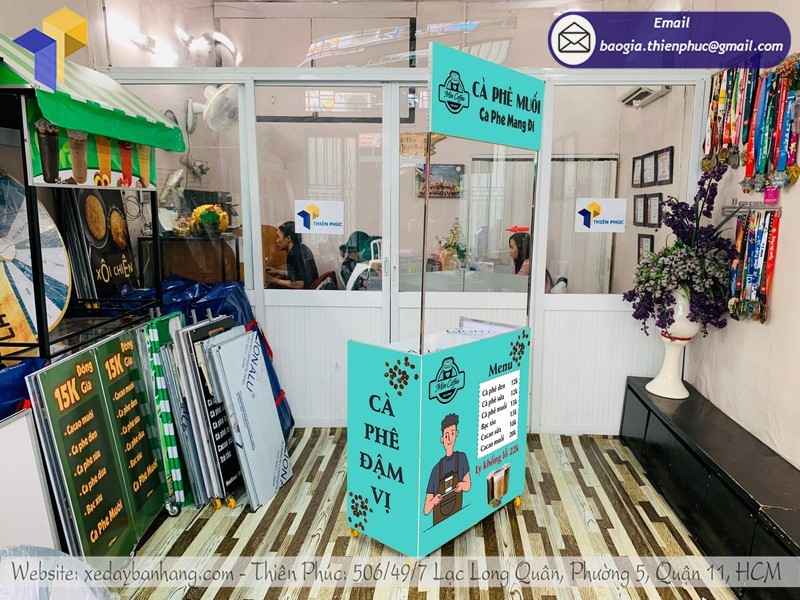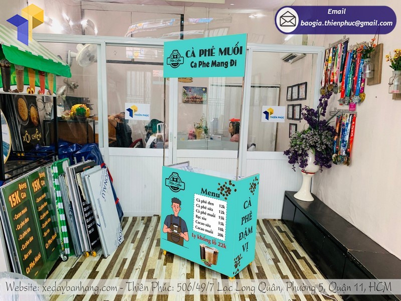 Tại Thiên Phúc, xe cafe lưu động có hơn 300 mẫu với nhiều kích thước và thiết kế khác nhau. Khi bạn mua sản phẩm tại Thiên Phúc với nhiều chất liệu khác nhau như gỗ; sắt; inox; alu.. với kích thước 80cm; 1m; 1m2; 1m4; 1m5; 1m6; 1m8; 2m, 2m2 ..Tất cả đều được Thiên Phúc gia công tỉ mỉ. Đặc biệt khi mua hàng tại Thiên Phúc, bạn được hướng dẫn và tư vấn tận tình nhằm giúp bạn tiết kiệm chi phí và phù hợp với mục đích kinh doanh mà lựa chọn loại xe thích hợp.