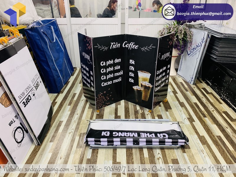 Tại Thiên Phúc, xe cafe lưu động có hơn 300 mẫu với nhiều kích thước và thiết kế khác nhau. Khi bạn mua sản phẩm tại Thiên Phúc với nhiều chất liệu khác nhau như gỗ; sắt; inox; alu.. với kích thước 80cm; 1m; 1m2; 1m4; 1m5; 1m6; 1m8; 2m, 2m2 ..Tất cả đều được Thiên Phúc gia công tỉ mỉ. Đặc biệt khi mua hàng tại Thiên Phúc, bạn được hướng dẫn và tư vấn tận tình nhằm giúp bạn tiết kiệm chi phí và phù hợp với mục đích kinh doanh mà lựa chọn loại xe thích hợp.