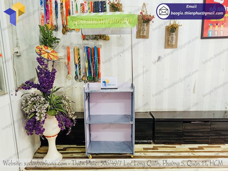 Công ty TNHH SX KD XNK Thiên Phúc với nhiều năm kinh nghiệm trong ngành sản xuất các dòng xe đẩy bán hàng uy tín nhất trong thị trường. Công ty hoạt động đã nhiều năm và được rất nhiều khách hàng tin tưởng và sử dụng lựa chọn khi mua xe đẩy bán trà chanh giá rẻ. Tại Thiên Phúc sẽ hỗ trợ cho bạn những mẫu thiết kế xe đẩy riêng theo ý của bạn. Đặc biệt, khi mua xe tại đây khách hàng sẽ vô cùng yên tâm khi Thiên Phúc có một chính sách bảo hành vô cùng tốt và chính sách hỗ trợ giao hàng trên toàn quốc và cà nước ngoài.