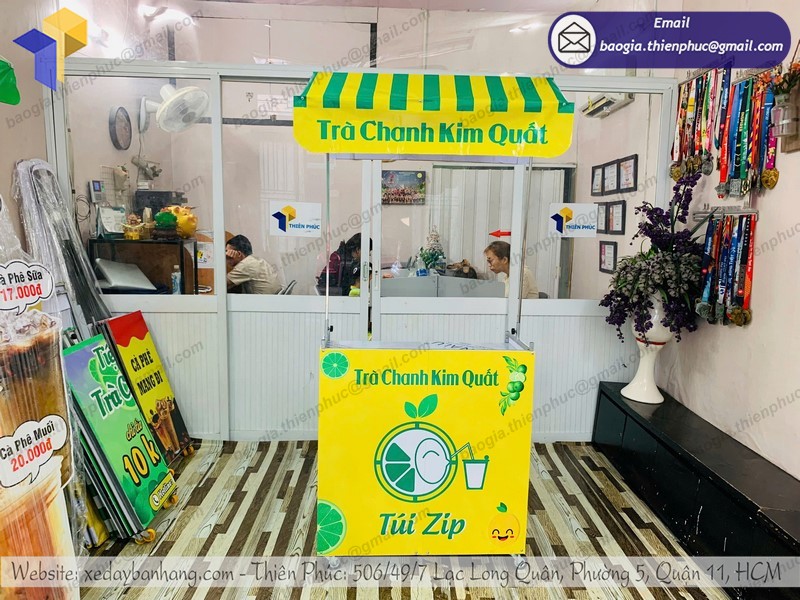 Công ty TNHH SX KD XNK Thiên Phúc với nhiều năm kinh nghiệm trong ngành sản xuất các dòng xe đẩy bán hàng uy tín nhất trong thị trường. Công ty hoạt động đã nhiều năm và được rất nhiều khách hàng tin tưởng và sử dụng lựa chọn khi mua xe xếp gọn bán trà chanh. Tại Thiên Phúc sẽ hỗ trợ cho bạn những mẫu thiết kế xe đẩy riêng theo ý của bạn. Đặc biệt, khi mua xe tại đây khách hàng sẽ vô cùng yên tâm khi Thiên Phúc có một chính sách bảo hành vô cùng tốt và chính sách hỗ trợ giao hàng trên toàn quốc và cà nước ngoài.