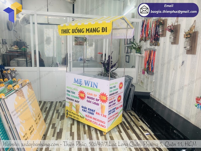 Xe được thiết kế chắc chắn tích hợp cùng bánh xe tiện lợi trong việc di chuyển nhờ đó các bạn có thể dễ dàng bán hàng lưu động và tiếp cận được với nhiều đối tượng khách hàng khác nhau.