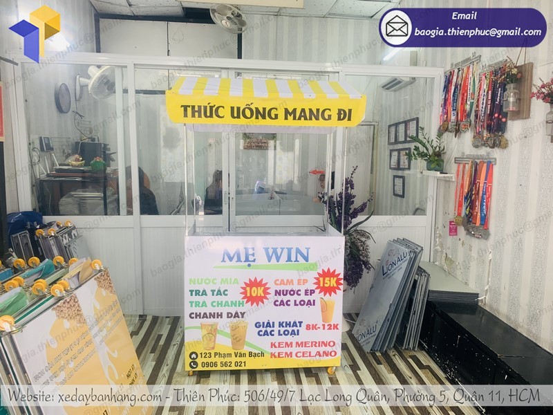 Bên cạnh đó, việc sử dụng xe đẩy bán cafe cũng giúp bạn phần nào có thể tiết kiệm chi phí thuê cửa hàng, nhờ không gian bán hàng chuyên nghiệp các bạn có thể xây dựng quán hàng của mình.