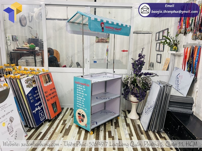 Công ty Thiên Phúc là một trong những địa chỉ chuyên sản xuất và phân phối xe bán cà phê lắp ráp đẹp, giá rẻ nhất mà bạn không thể bỏ qua. Với hơn 10 năm kinh nghiệm trong lĩnh vực gia công xe đẩy bán hàng, trong đó có tủ cà phê. Các sản phẩm gia công phân phối tại Thiên Phúc luôn được người tiêu dùng đánh giá cao: Chất lượng sản phẩm tốt – Mẫu mã đẹp độc lạ – Giá thành rẻ.