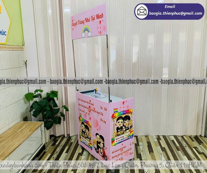 - Cơ động tuyệt đối: Hệ thống bánh xe chịu lực có khả năng xoay 360 độ, cho phép bạn di chuyển quầy hàng qua các con ngõ nhỏ hoặc thay đổi vị trí bán hàng chỉ trong vài phút.
