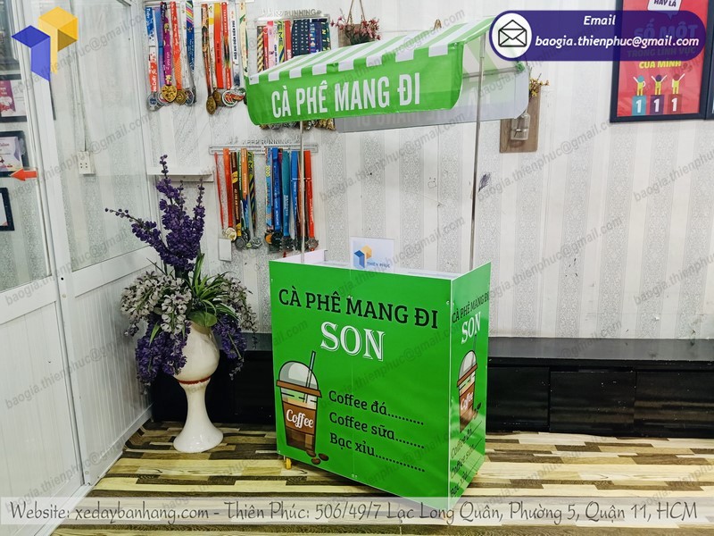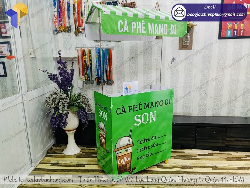 Vậy là Thiên Phúc đã giới thiệu xong với bạn mẫu xe cà phê vừa thông minh vừa tiện lợi. Nếu quý khách hàng còn vấn đề nào chưa được giải đáp hay muốn mua quầy café lưu động thì hãy liên hệ vơi Thiên Phúc qua hotline 0903 897 980 hoặc đến văn phòng của chúng tôi tại: 506/49/7 Lạc Long Quân, Phường 5, Quận 11, TP Hồ Chí Minh