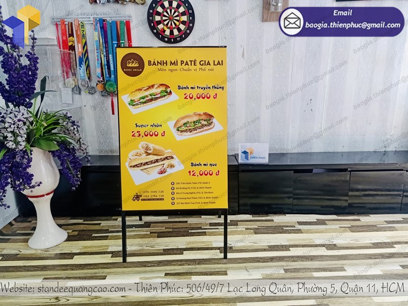 Đơn vị thiết kế và in ấn standee chân sắt chữ a tại TP HCM