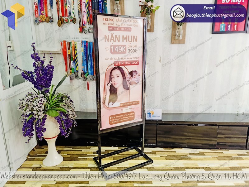 - Giá thành standee đế sắt hai mặt cạnh tranh nhất.