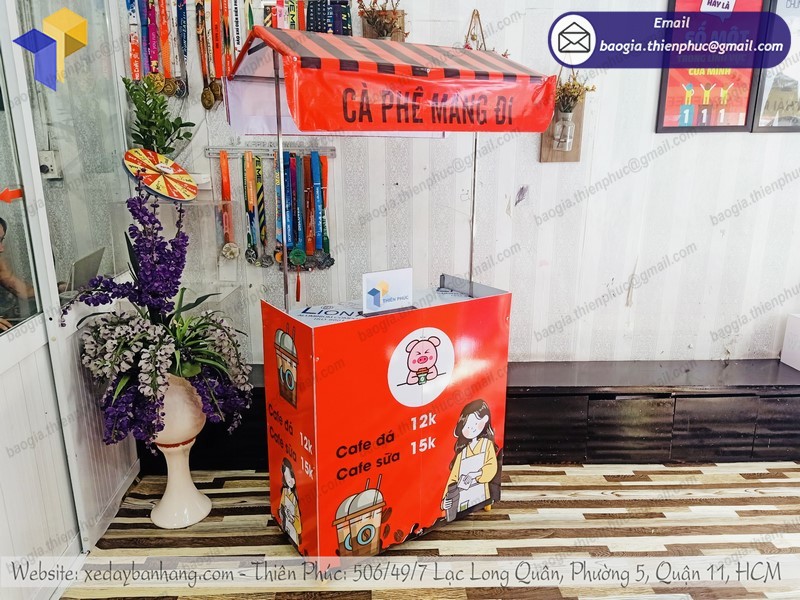 Mua xe đẩy bán cà phê nguyên chất giá rẻ tại Thiên Phúc để được hỗ trợ thiết kế Decal độc quyền miễn phí. Chính sách bảo hành trọn đời chuyên nghiệp. Trợ giá hỗ trợ vận chuyển miễn phí tận nơi trên toàn quốc. Liên hệ ngay số điện thoại: 0903.897.980