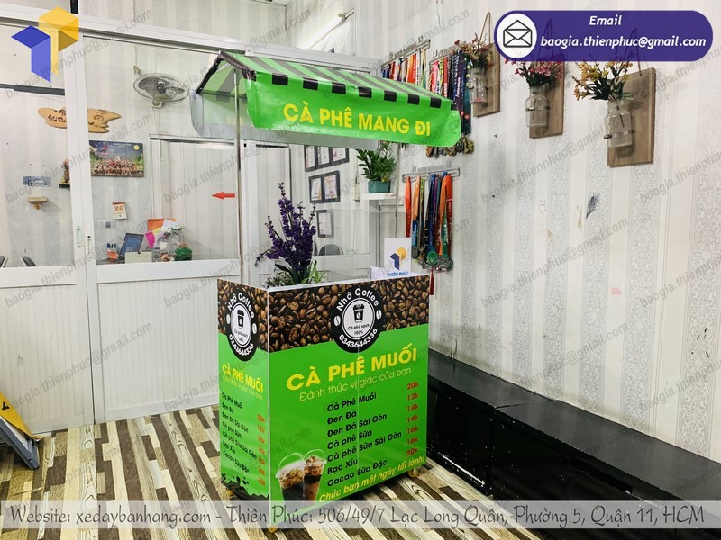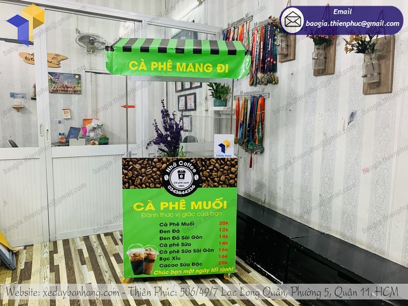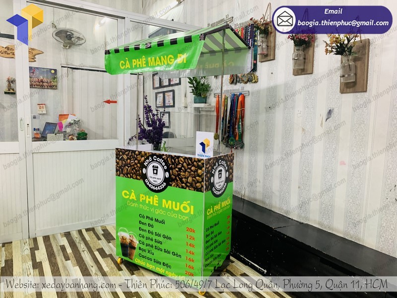 Nếu bạn muốn thử khả năng của mình với mô hình kinh doanh mới lạ này, hãy liên hệ ngay với công ty Thiên Phúc chúng tôi để đặt cho mình một xe lắp ráp bán cafe take away vừa đẹp, giá lại rẻ mà còn nhiều tiện ích nữa chứ.
