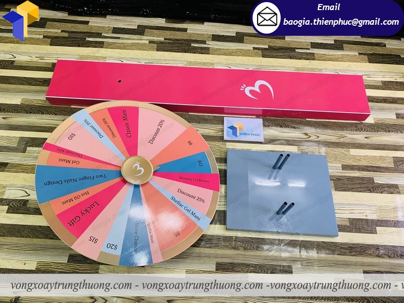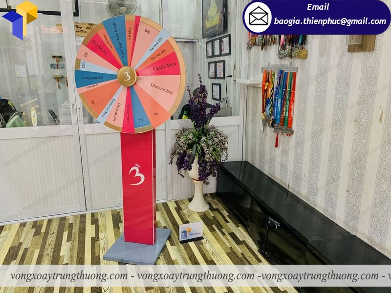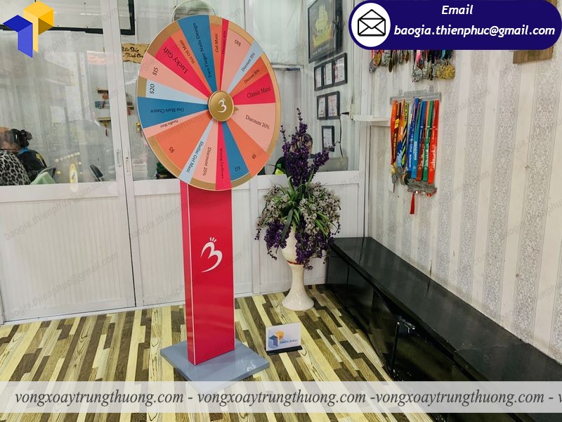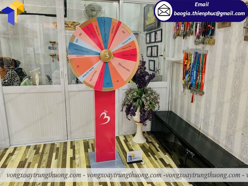 Vòng xoay may mắn có nhiều kiểu dáng và kích thước khác nhau khách hàng có thể đặt theo thiết kế hoặc theo yêu cầu của khách hàng.Vòng quay trúng thưởng với ưu điểm gọn nhẹ, chắc chắn phù hợp với không gian hẹp có nhiều người vòng quay dễ dàng di chuyển nhiều nơi .