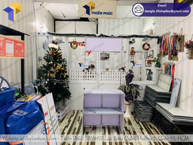 Với nhiều năm hoạt động trong lĩnh vực sản xuất booth tiếp thị sản phẩm mới. Cùng các sản phẩm quầy kệ khác như quầy bán hàng cố định, gian hàng hội chợ, gian hàng triển lãm,… Công ty Thiên Phúc chúng tôi đã đem đến cho các doanh nghiệp hàng ngàn sản phẩm booth quảng cáo sampling siêu thị rẻ, booth sampling, quầy bán hàng di động,… Giúp các doanh nghiệp đạt kết quả cao các trong chiến dịch quảng cáo sản phẩm. Trong những năm nay, Thiên Phúc luôn đồng hành và chia sẻ cùng các doanh nghiệp cũng như những chuyên gia trong ngành quảng cáo. Nhằm đảm bảo cho sự thành công của doanh nghiệp, thúc đẩy tính thương hiệu, tạo sự khác biệt và giá trị về mặt hình ảnh. Để có thể sở hữu những sản phẩm quầy bán hàng di động chất lượng cao với chi phí rẻ nhất, hãy liên hệ ngay với chúng tôi để được tư vấn 24/7 và nhận nhiều ưu đãi khủng nhé!