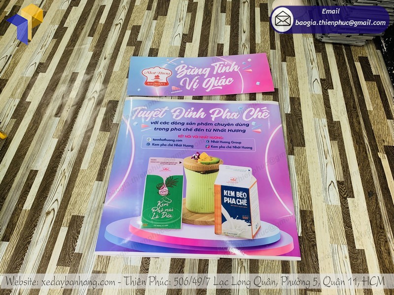 + Phần tấm logo phía trên là 0.3×0.8m chất liệu decal ngoài trời, cắt sát để cán bồi lên bề mặt bàn và tấm logo