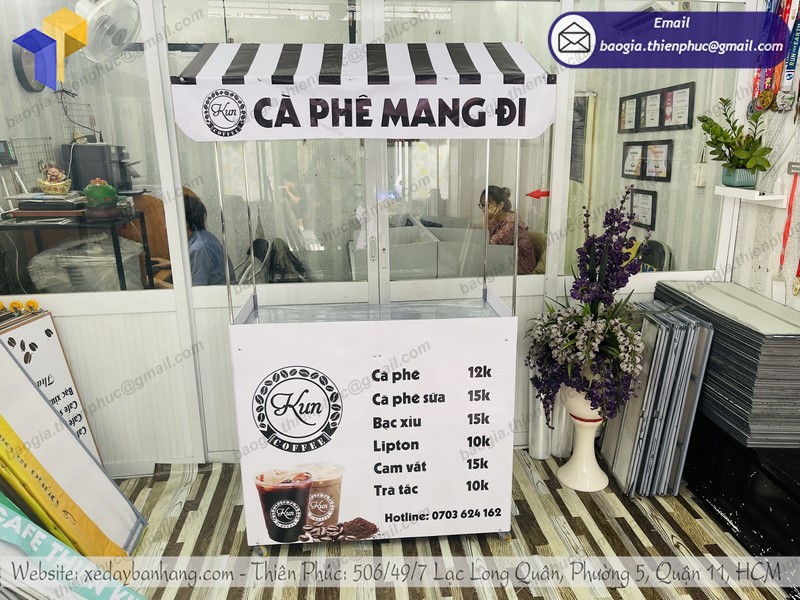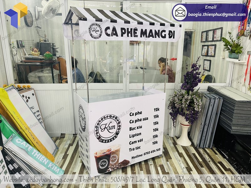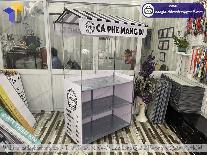 THIÊN PHÚC – Là một đơn vị có kinh nghiệm lâu năm trong lĩnh vực làm các loại xe đẩy bán hàng, quầy bán hàng lưu động, booth bán hàng và các sản phẩm quảng cáo ngoài trời, vòng quay, thùng phiếu chất lượng cao với giá vô cùng hấp hẫn.