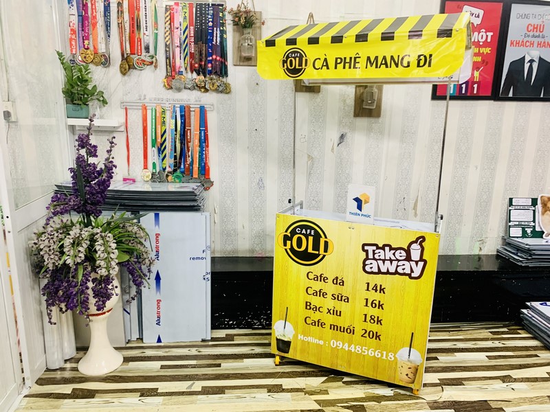 - Trang bị đầy đủ dụng cụ như 1 cửa hàng thực thụ: Mặc dù nhỏ gọn như thế nhưng quầy bán cà phê mang đi vẫn đảm bảo việc bán hàng bình thường như các cửa tiệm. Xe có đủ không gian để chứa đựng đồ dùng cần thiết, các mặt hàng đồ uống cũng như các dụng cụ như túi bóng, thùng đá, cốc, ống hút, cốc nhựa, khăn giấy,….