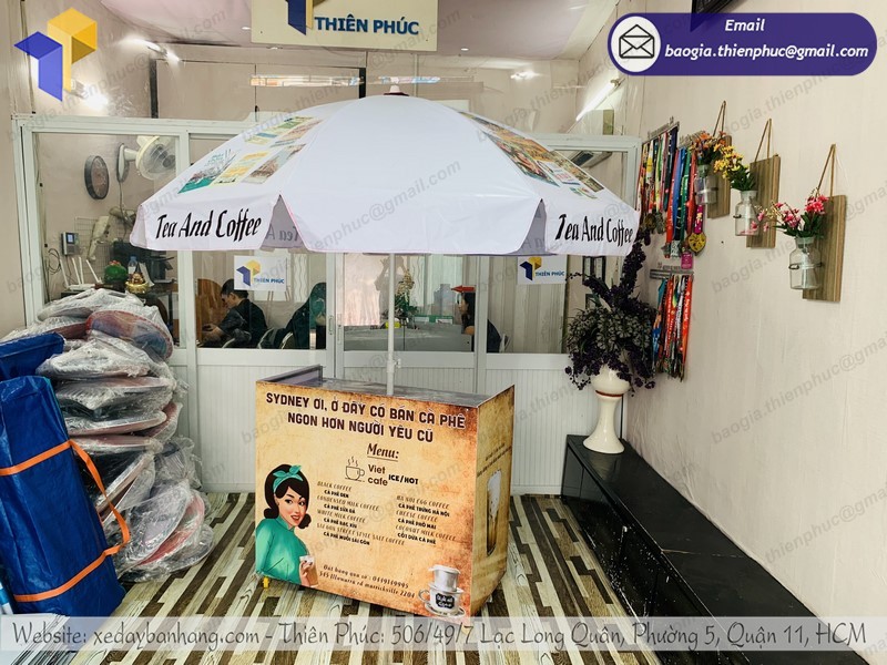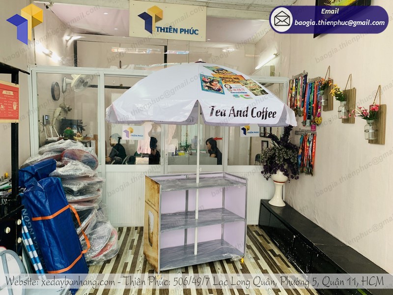 Thiết kế đề cao việc mang đến tiện lợi nhất cho người kinh doanh trong quá trình làm việc. Thiên Phúc đã nghiên cứu đưa ra các phương án thực tế nhất để cho ra mắt các sản phẩm chất lượng. xe bán café gấp gọn của chúng tôi được thiết kế đầy đủ các bộ phận để có thể phục vụ cho người kinh doanh. Gồm có: mái che, bánh xe, ngăn đựng đồ, bàn thao tác,…