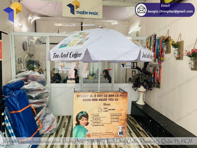 Ngoài những mẫu xe bán café mang đi có sẵn thì với nhiều mẫu mã kích thước khác nhau. Về mẫu mã có thể kể đến mẫu xe bánh mì hình chữ nhật, hình lục giác, hình cong,..Hay về kích thước có thể kể đến những kích thước như 60 cm, 80 cm, 1m…Đặc biệt, thì Thiên Phúc còn nhận thiết kế xe đẩy bán café di động theo yêu cầu của khách hàng. Khách hàng có thể lựa chọn kích thước kiểu dáng hoàn toàn theo ý tưởng của mình.
