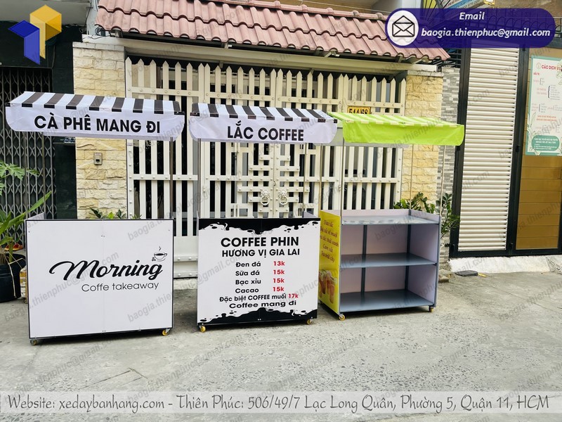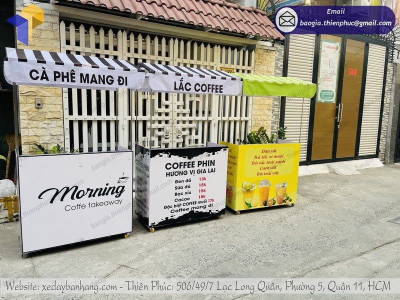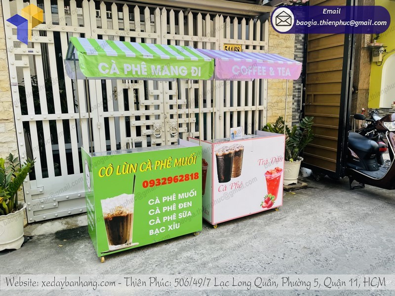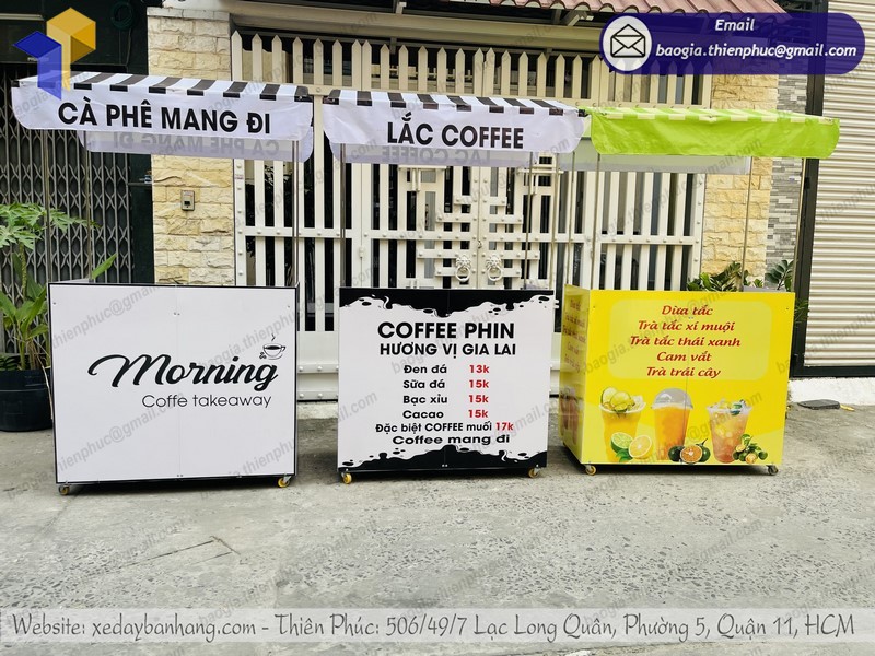 Xưởng Thiên Phúc là đơn vị thiết kế, sản xuất những mẫu xe bán hàng, cafe, trà sữa số một tại TP. HCM. Với nhiều thiết kế sáng tạo, chất liệu cao cấp sẽ giúp bạn có một chiếc xe bán cafe gấp gọn lưu động của bạn ấn tượng, tiếp cận được nhiều khách hàng hơn. Thiết kế 3D giúp bạn dễ hình dung được mà không cần phải đợi đến lúc sản xuất xong, đó là một lợi thế nếu bạn sửa dụng sản phẩm tại Thiên Phúc.