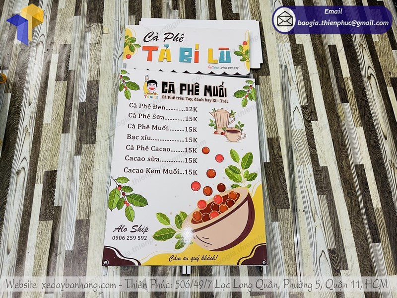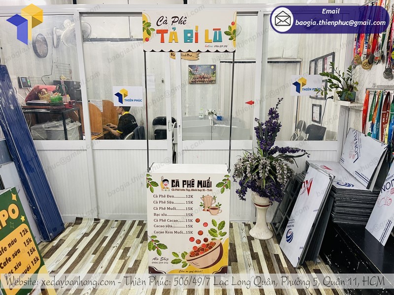 Thiên Phúc tất cả các mẫu thiết kế booth bán cà phê lắp ráp đều làm decal theo yêu cầu của khách hàng.