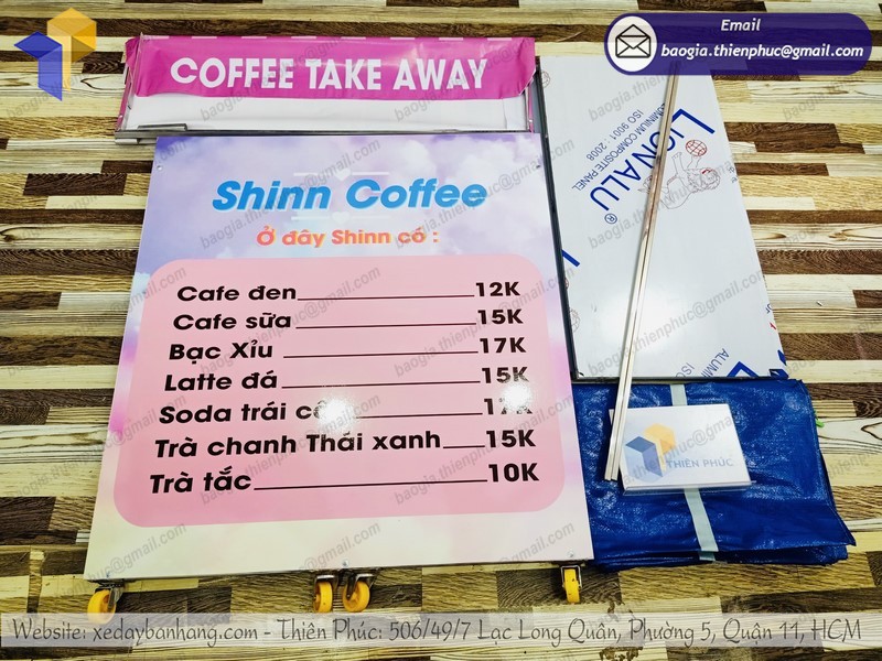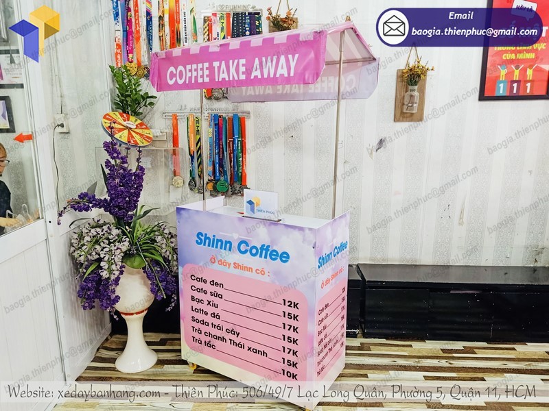 Thiên Phúc là công ty hàng đầu Việt Nam trong việc cung cấp các giải pháp thiết kế xe bán cà phê gấp gọn các loại; đèn trang trí; sản xuất standee, vòng quay, thùng phiếu, khay cho lĩnh vực kinh doanh và ăn uống. Chúng tôi với đội ngũ kĩ thuật, kiến trúc sư lành nghề với nhiều năm kinh nghiệm về lĩnh vực tư vấn và thiết kế xe đẩy – kiots ấn tượng cho các hộ kinh doanh/ chuỗi nhượng quyền/ starup… Đem đến cho khách hàng với đa dạng sự lựa chọn, ấn tượng và nổi bật. Với phương châm vì khách hàng phục vụ, Chúng tôi luôn lắng nghe ý kiến phản hổi của khách hàng về yêu cầu thiết kế và chất lượng sản phẩm.