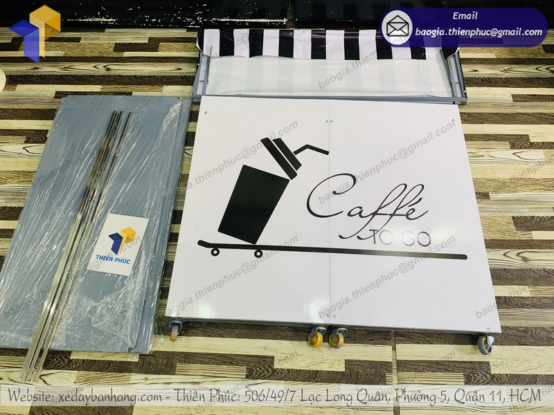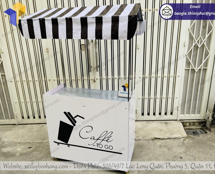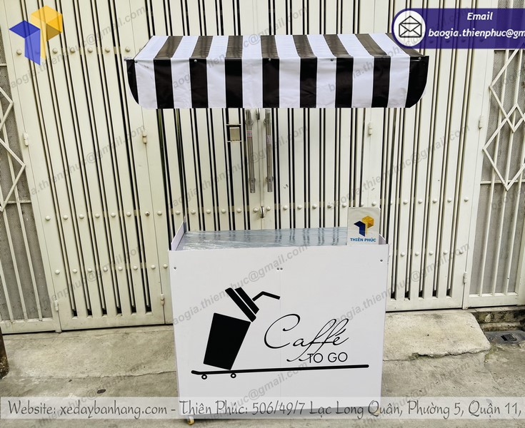 Với đội ngũ chuyên gia nhiều năm kinh nghiệm trong ngành, Thiên Phúc tự hào là thương hiệu uy tín, dẫn đầu trong sản xuất các loại xe đẩy bán hàng lưu động. Trong các dòng xe đẩy được ưa chuộng chọn mua tại Thiên Phúc có quầy gấp gọn bán cà phê. Bởi các mẫu xe luôn được cập nhật cải tiến liên tục để bắt kịp xu hướng. Người bán có thể yên tâm mua hàng tại đây. Sản phẩm không những bền, đẹp mà giá cả còn cạnh tranh.