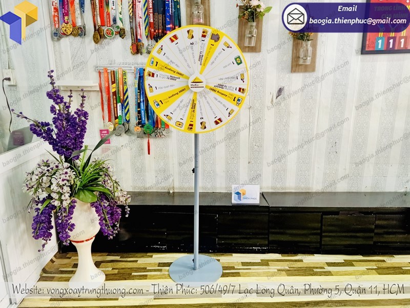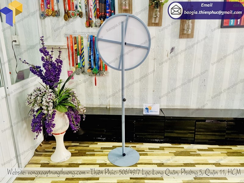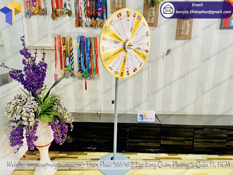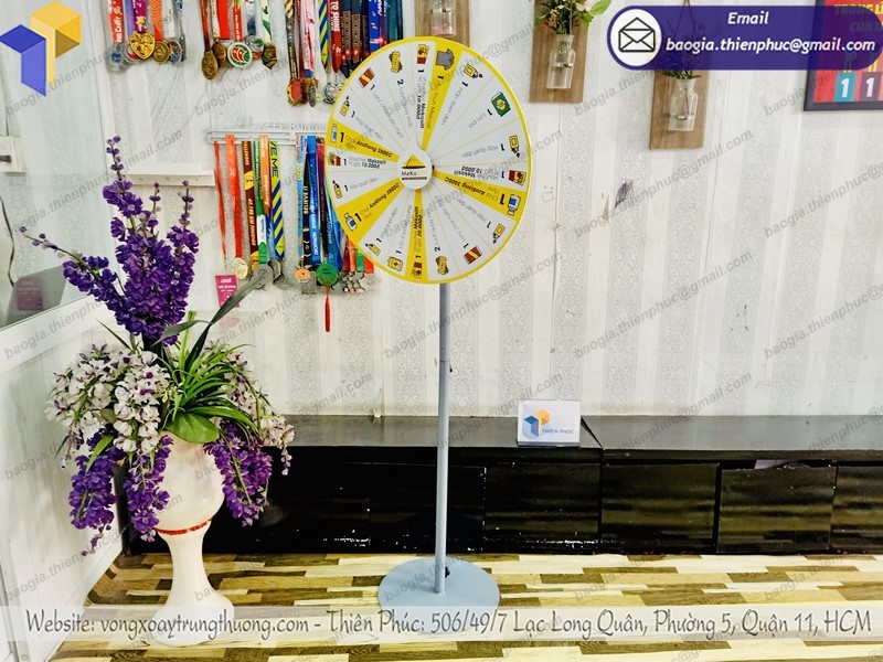 Đến với Thiên Phúc chúng tôi, quý khách hàng hoàn toàn có thể yên tâm việc sử dụng các vòng quay trúng thưởng, vòng xoay tự ghi chân đứng. Những mẫu mã vòng quay may mắn làm theo mọi yêu cầu, dán logo hoặc decal giúp quý khách hàng yên tâm hơn trong quá trình sử dụng.