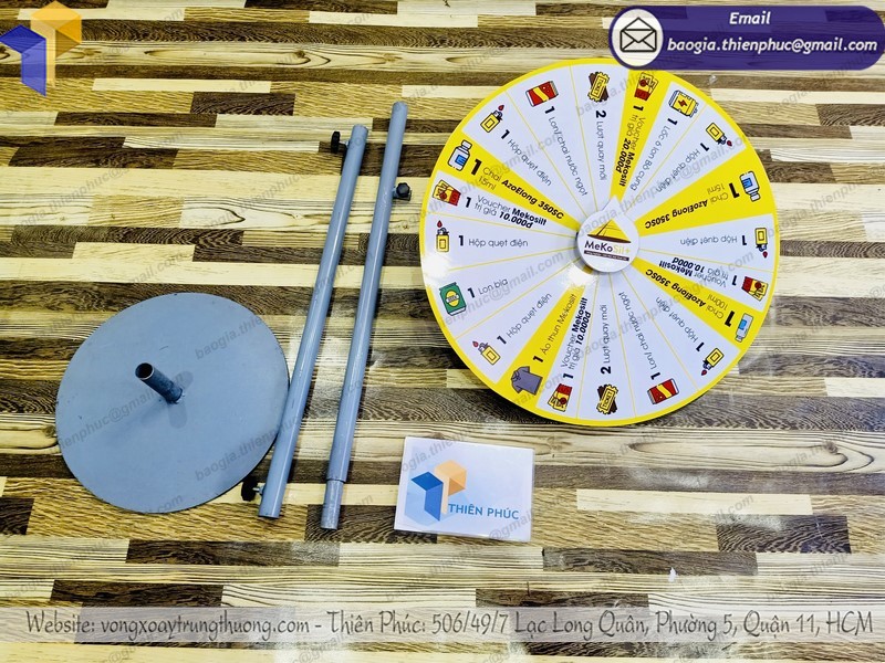 Quý khách đang có nhu cầu làm vòng quay trúng thưởng, mua vòng quay trúng thưởng, hoặc đặt làm vòng quay số may mắn, vòng quay tự ghi theo mọi yêu cầu hãy liên hệ ngay với chúng tôi để nhận tư vấn và hỗ trợ nhiệt tình. Liên hệ với Thiên Phúc qua hotline 0903.897.980 để sở hữu bộ sản phẩm vòng quay may mắn sự kiện ngay hôm nay nào.