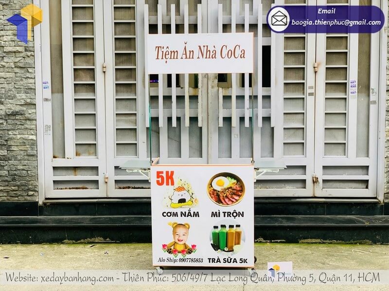 Thiết kế mẫu quầy bán cơm nắm lề đường rẻ - Thiên Phúc chuyên thiết kế, in ấn miễn phí, báo giá sớm nhất chỉ với 3 phút, đặt trên 10 quầy xe giảm 50.000đ/quầy.