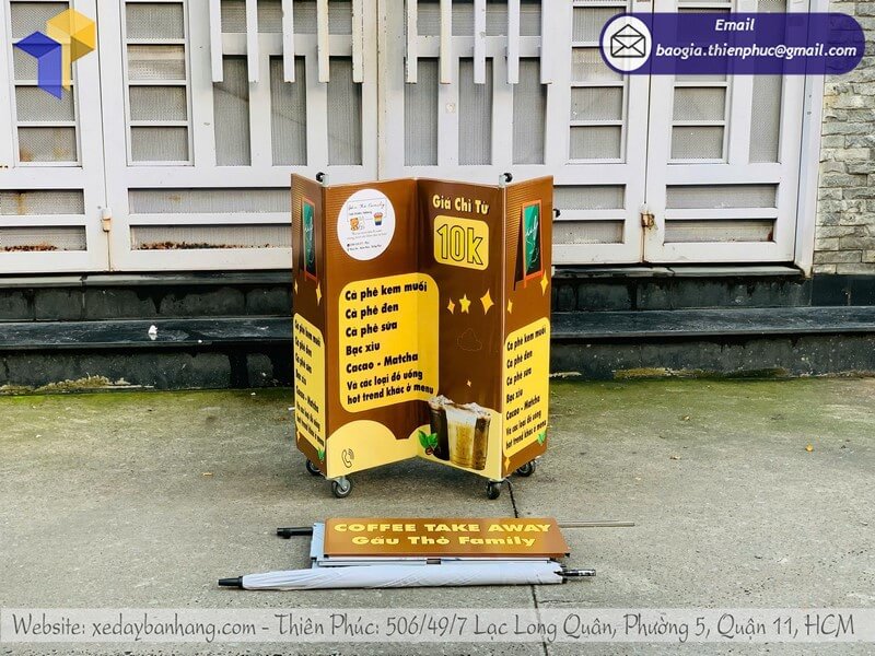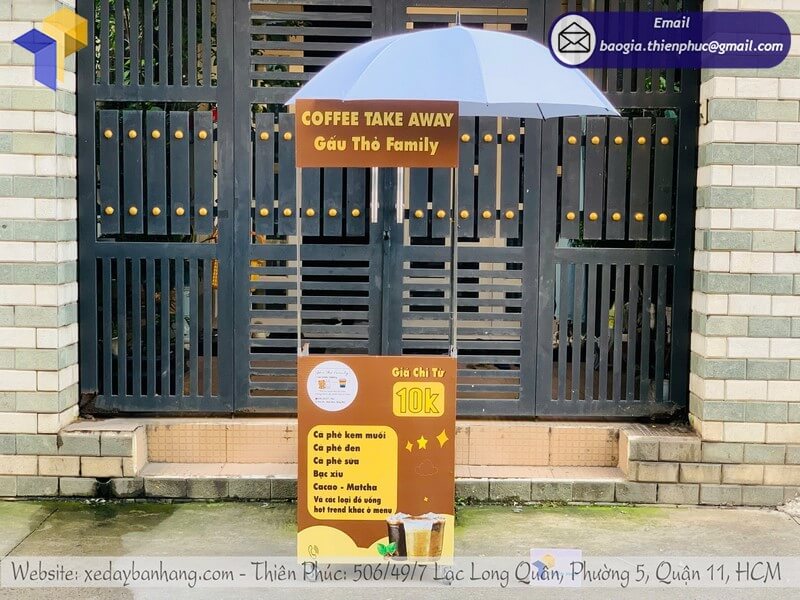 - Xe cà phê take away có dù – đầu tư nhỏ, lợi nhuận cao.
