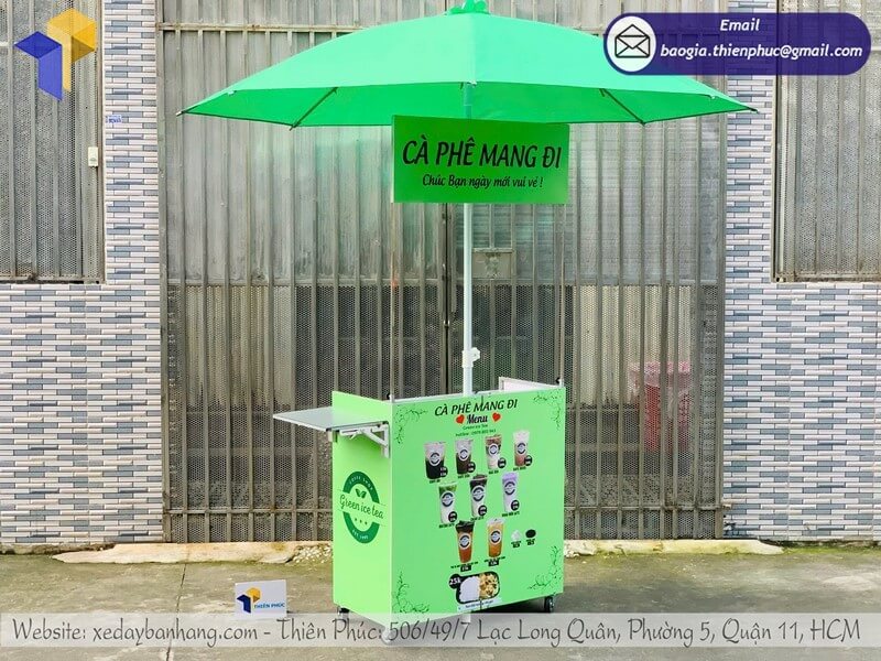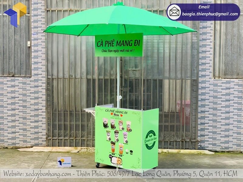 Thiết kế quầy bán cafe mang đi có ô dù che đẹp - Thiên Phúc với kinh nghiệm trên 10 năm hoạt động, xưởng sản xuất với nhiều mẫu quầy có kèm theo dù che, thiết kế miễn phí logo theo yêu cầu, giá sỉ rẻ.