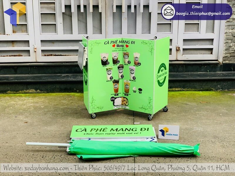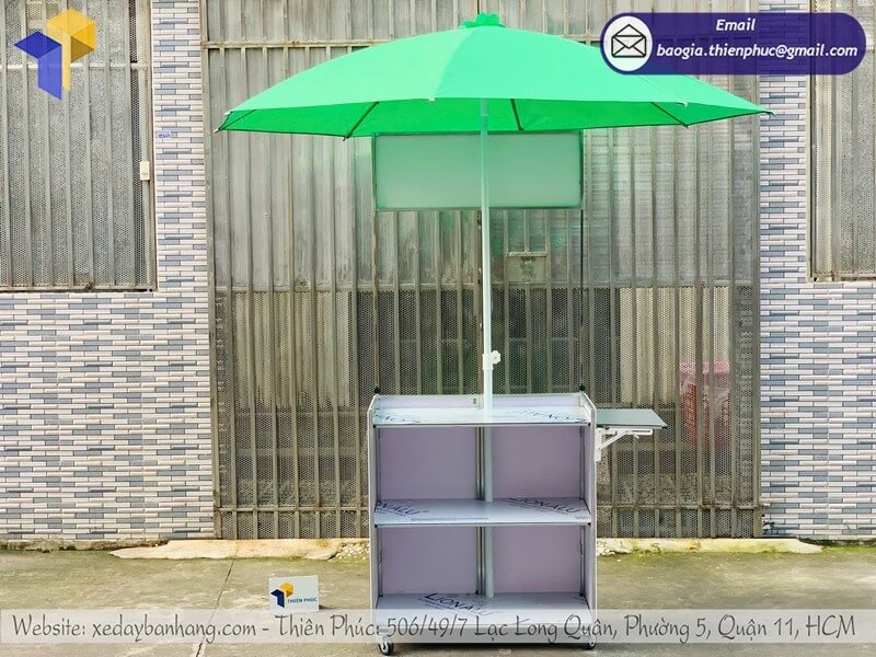 - Quầy bán hàng lưu động đa năng: Thiết kế linh hoạt, kết hợp bánh xe, ô dù, ngăn chứa tiện nghi, thích hợp kinh doanh ngoài trời.