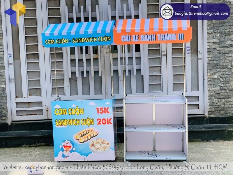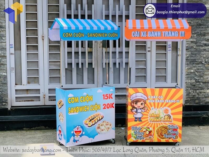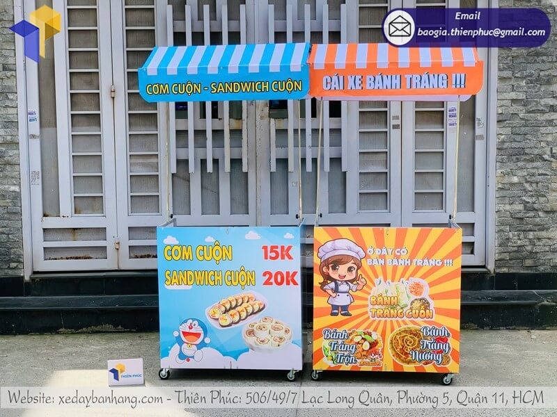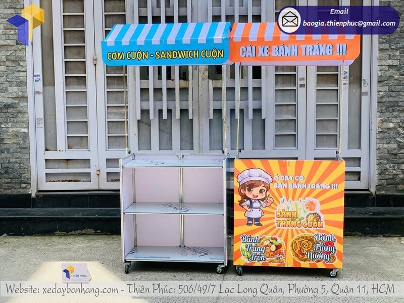 Thiết kế quầy bán đồ ăn dạo có mái che - Thiên Phúc là xưởng sản xuất trên 10 năm kinh nghiệm, cam kết giá rẻ tận xưởng, thiết kế theo yêu cầu miễn phí.