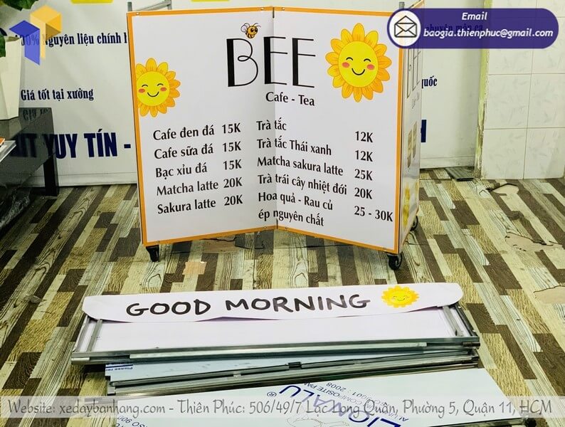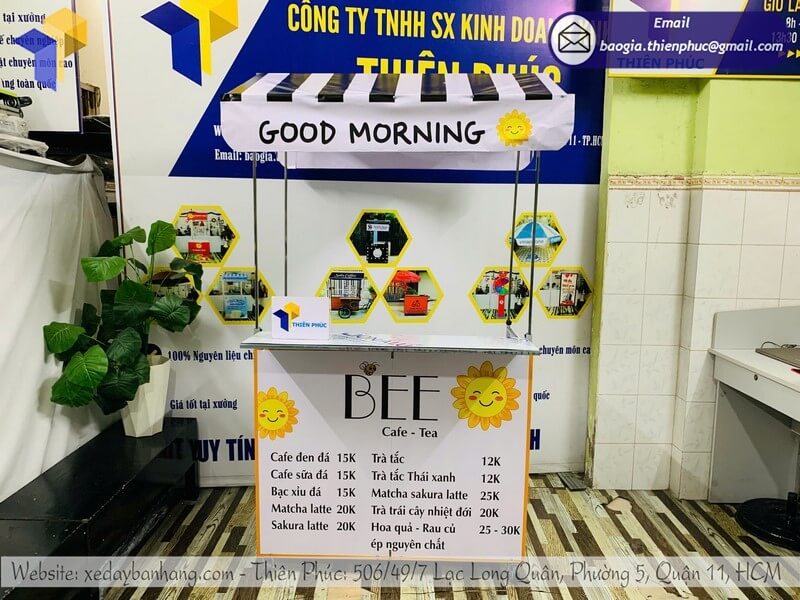 Tên sản phẩm: Thiết kế quầy cafe gấp gọn lề đường với logo GOOD MORNING BEE CAFE-TEA