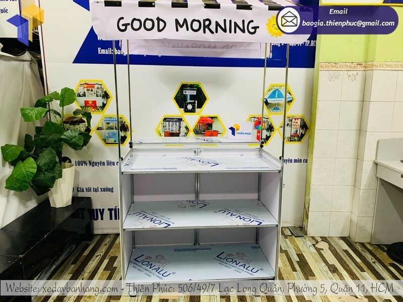 Thiết kế quầy cafe gấp gọn lề đường - Xưởng Thiên Phúc chuyên thiết kế theo yêu cầu riêng của khách hàng, miễn phí thiết kế, in ấn logo, giá rẻ tận xưởng chỉ từ 700.000đ/xe trở lên